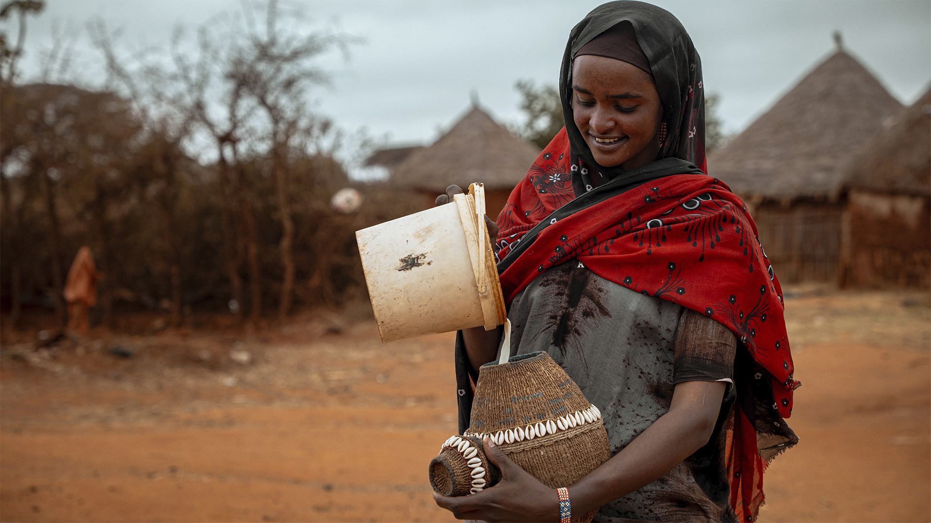 «This container is my treasure. I really like it; I decorated it myself.» Loko Dida from Samaro in Ethiopia uses it to store milk from her goats. Since joining the women's cooperative supported by Helvetas, she has been able to sell her milk at fair prices in the local shop. Helvetas strengthens women's economic independence by providing training in financial literacy, animal husbandry, and marketing. This means a more reliable income for Loko, who has also been caring for her nieces and nephews since her mother fell ill.