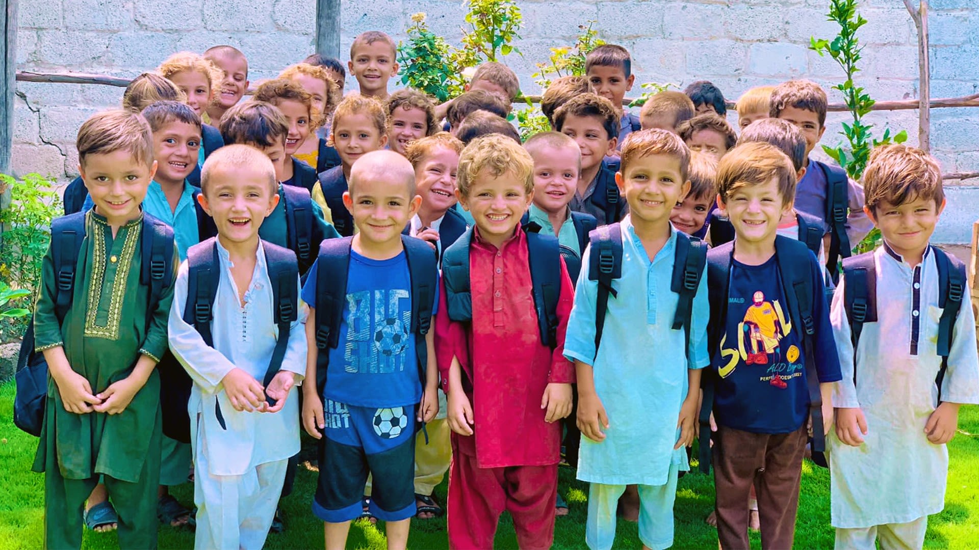 Happy faces in the Hajizai refugee village in Pakistan: Children who have fled Afghanistan have just received school backpacks and learning materials to help them start school. Many of them have not been able to attend school since they were forced to leave their homes. Helvetas supports them in non-formal education centers, where refugee girls and boys learn basic subjects, fill in gaps in their knowledge, and prepare for the transition to the Pakistani school system. This allows families to regain a sense of normalcy and gives children reliable access to education.