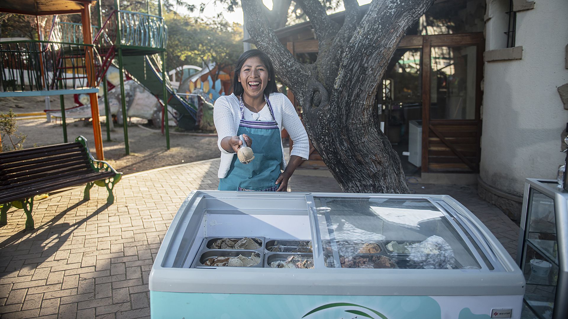 Am 25. November, dem Internationalen Tag zur Beseitigung von Gewalt an Frauen, zeigt die Geschichte von Senobia Lázaro Puma aus Bolivien, wie stark wirtschaftliche Unabhängigkeit das Leben von Frauen verändern kann. Sie wuchs unter schwierigen Bedingungen auf und erhielt Unterstützung von einer Stiftung, die Helvetas in Sucre mitgegründet hat und die Jungunternehmer:innen fördert. Heute stellt Senobia mit ihrem Unternehmen Meraki beliebte Glacé-Sorten her, beschäftigt Frauen, die Gewalt erlebt haben, zahlt faire Löhne und unterstützt sie dabei, ein selbstbestimmtes Leben aufzubauen.
