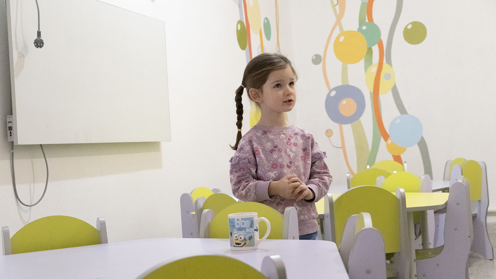 Sie kennt keine Welt ohne Krieg: Oleksandra aus Dykanka in der Ukraine war sieben Monate alt, als die russische Vollinvasion begann. Drei Jahre später spielt Oleksandra im Schutzkeller ihres Kindergartens – einem Ort, der ihr Sicherheit gibt, während ihr Vater an der Front kämpft. Ihre Mutter Marina half bei der Suche nach Finanzierungsmöglichkeiten für die Ausstattung des Kellers; ein Teil der Kosten hat Helvetas übernommen. Mit eingerichteten Schutzräumen können Kindergärten und Schulen auch im Krieg offen bleiben – und Familien wie die von Oleksandra entlasten.